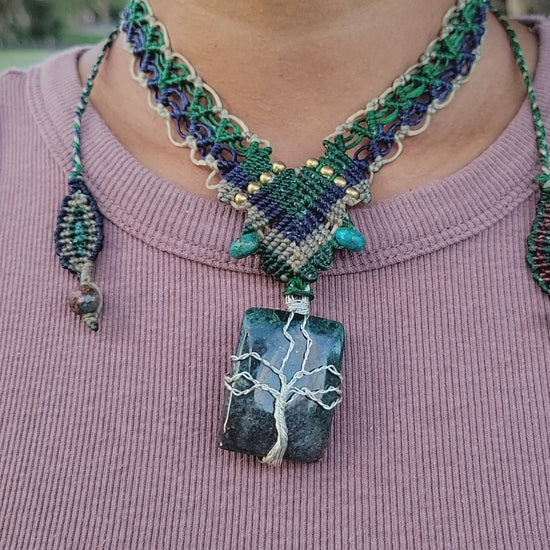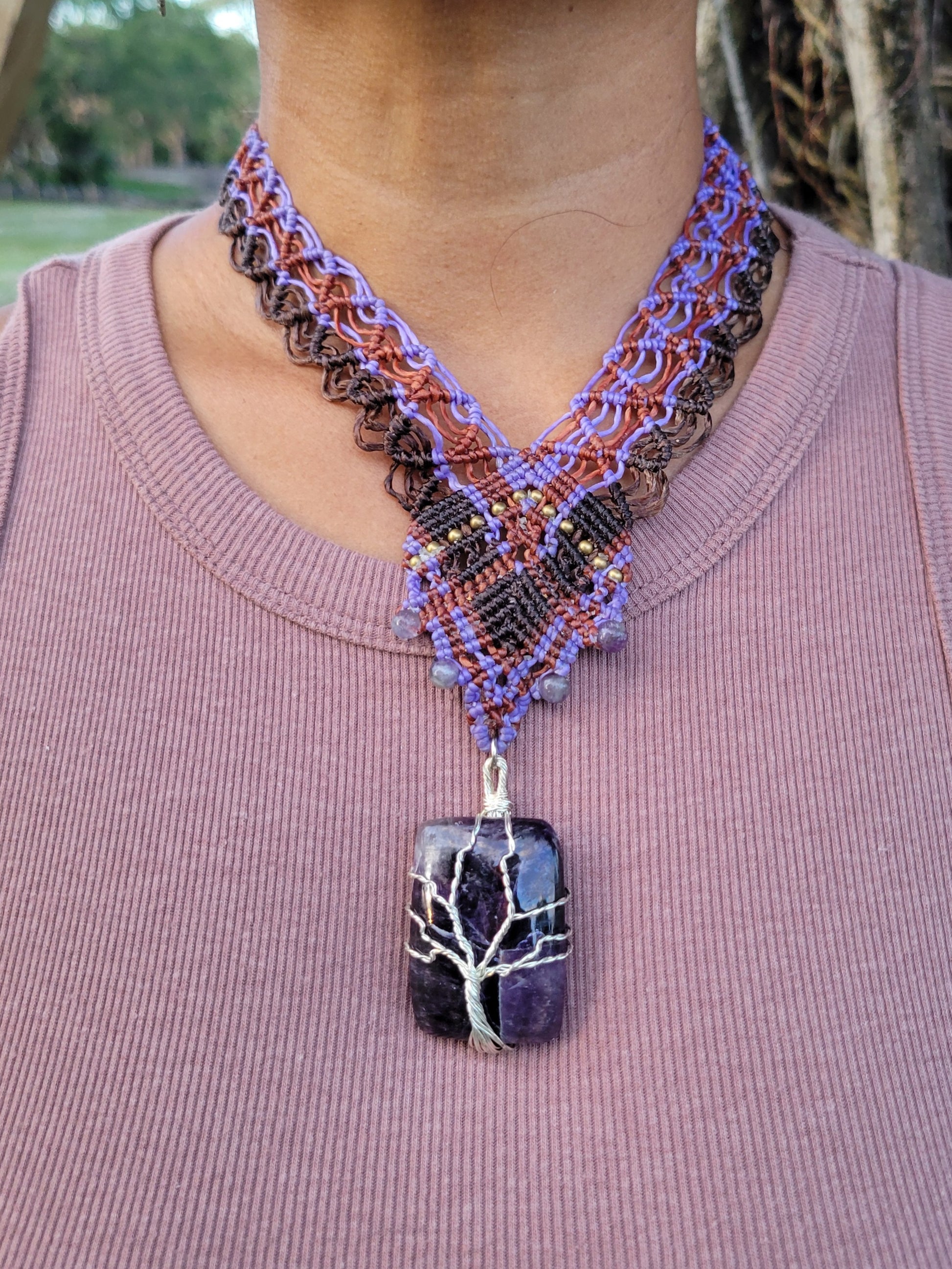 Amethyst Pendant Necklace – Tree of Life Boho Macramé Choker